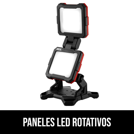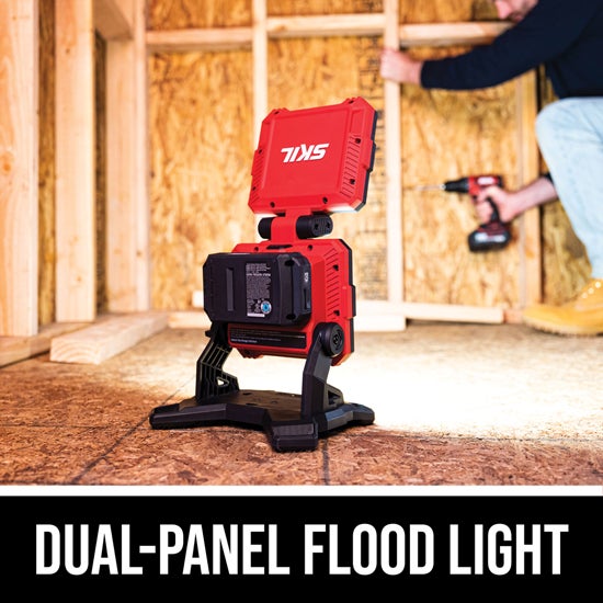 The power of multiple work lights, now in one convenient and powerful SKIL PWRCORE 20™ Flood Light. With two ultra-bright LED panels to illuminate large work areas with ease. Choose from three settings—high (1800 lumens), low (900 lumens), or single panel (450 lumens)—and easily rotate either panel to direct light. This work light will power through the job with PWRCORE 20™ lithium technology providing longer battery life. Part of the PWRCORE 20™ system. It uses the same batteries as your other SKIL PWRCORE 20™ tools.