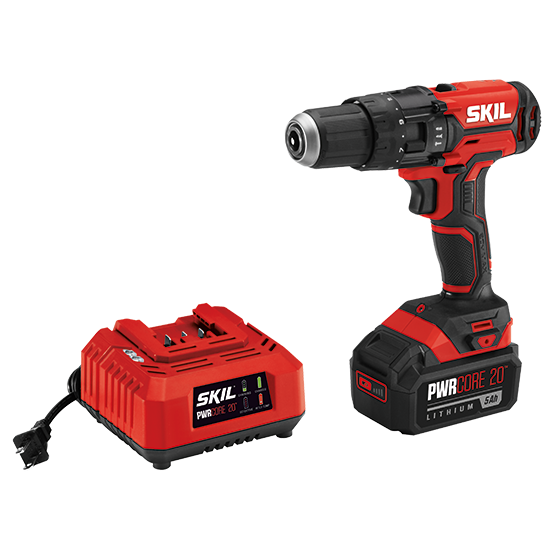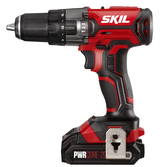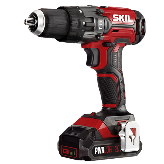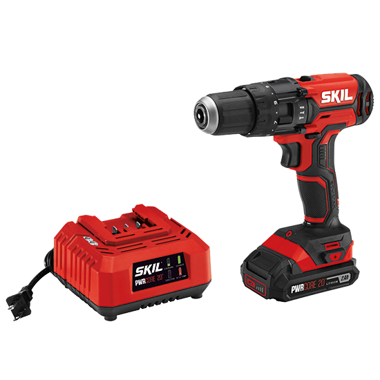 Your DIY Power Drill for Any Task. With three functions in one, 17+1 torque settings and variable speed control, the SKIL 20V 1/2 Inch Hammer Drill is the perfect tool to tackle the job. Versatile enough to go from tightening screws to drilling into tough materials from wood to metal and concrete, this power hammer drill is the ideal tool for a variety of work. This hammer drill includes a PWRCORE 20™ 2.0Ah Lithium Battery and 20V Charger.