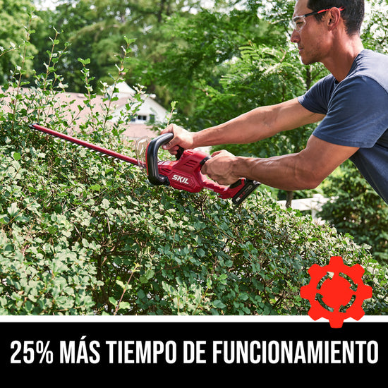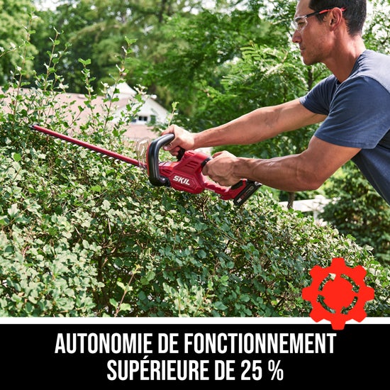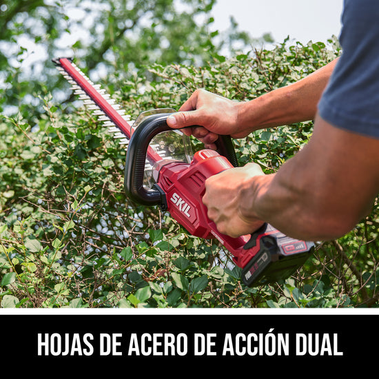 Get serious performance in an hedge trimmer powered by SKIL PWRCORE 20™ lithium-ion technology. Add more power and durability to your tool shed with a cordless hedge trimmer. Equipped with dual-action blades for clean and efficient cuts, hardened steel blades for longevity, and a motor to power through the job at hand. This Hedge Trimmer kit includes a 2.0Ah PWRCORE 20™ lithium-ion battery and charger, plus an Easy Storage Bracket that allows you to conveniently store all your SKIL PWRCORE 20™ outdoor equipment with ease. The included battery and charger are compatible with all SKIL tools in the PWRCORE 20™ family.