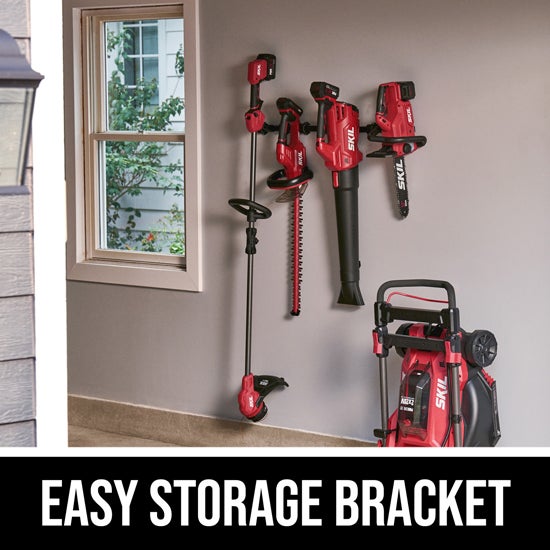 - EASY STORAGE BRACKET – This hedge trimmer comes equipped with an Easy Storage Hook and Bracket, to conveniently store all your SKIL PWRCORE 20™ outdoor equipment with ease.