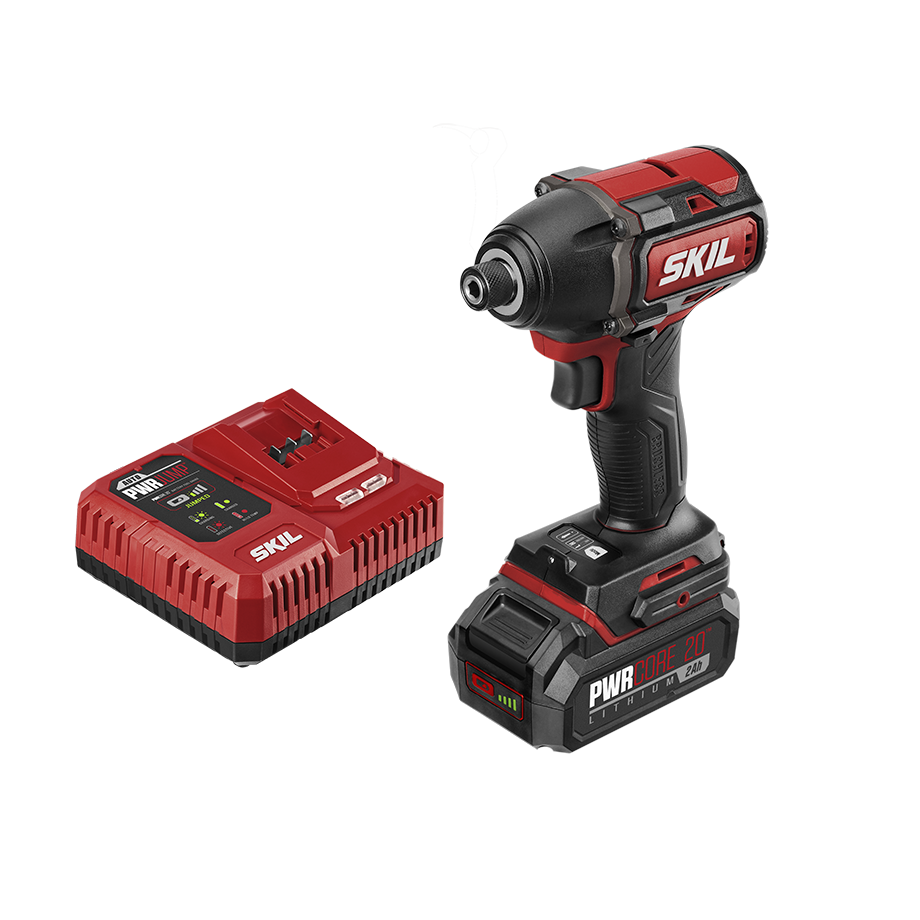 - 20V IMPACT DRIVER KIT—Includes a PWRCORE™ 20 2.0Ah Lithium Battery and PWRJUMP™ Charger.