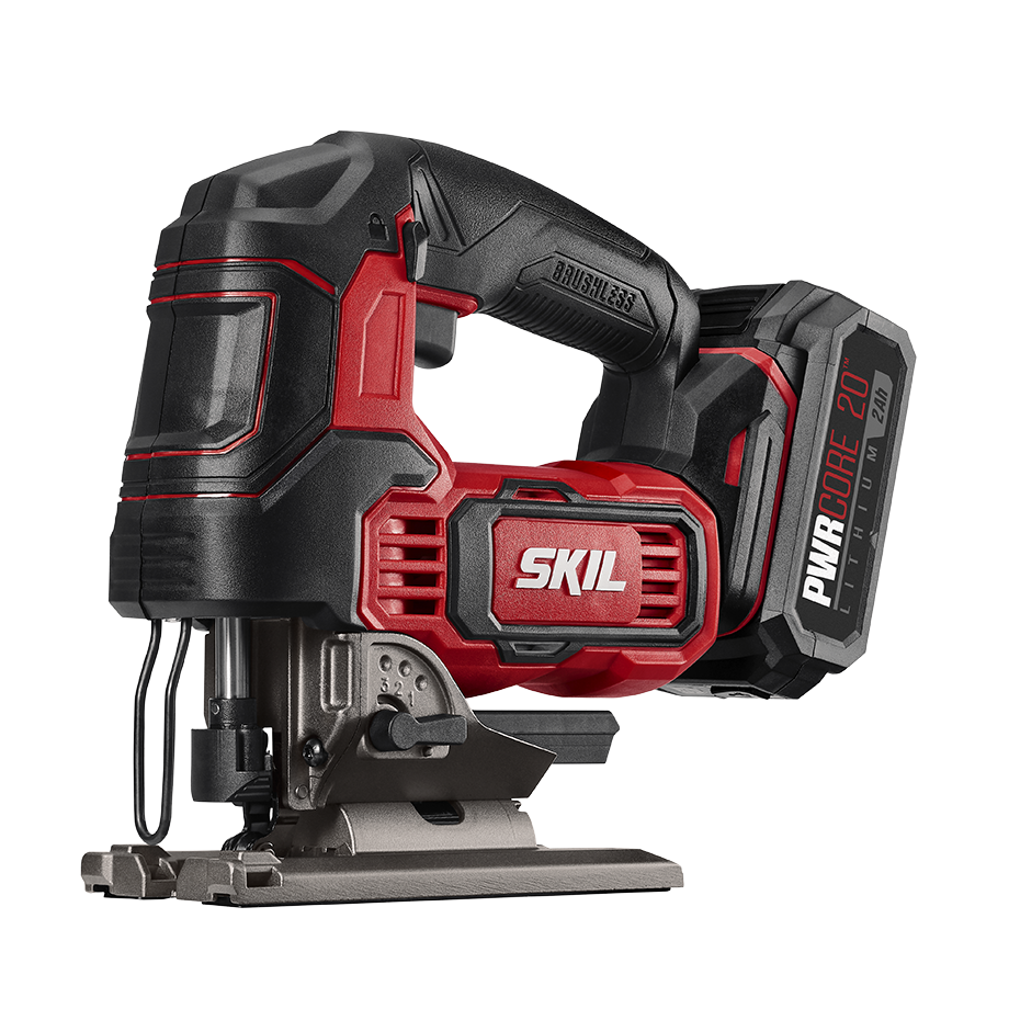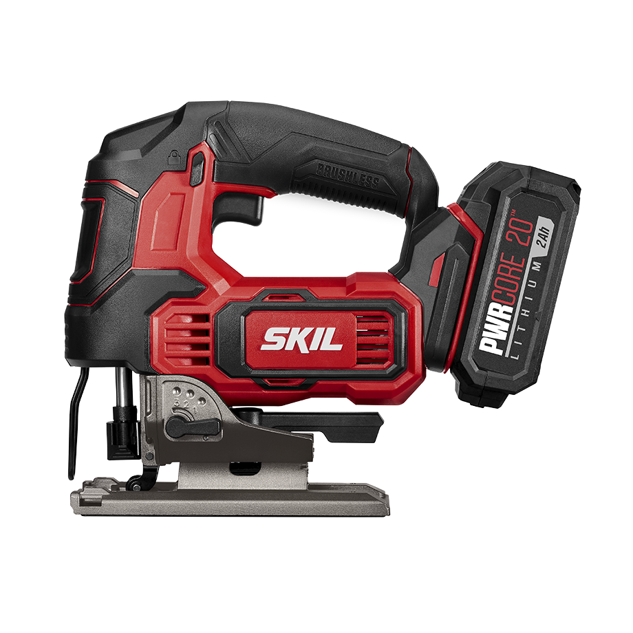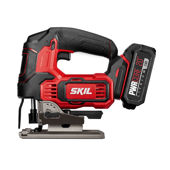 Customize each cut with the SKIL 20V Cordless Jigsaw, ideal for curved and intricate cuts in a variety of materials from particleboard and plywood to metal. This electric saw set comes with a PWRCORE 20™ 2.0Ah Lithium Battery and Automatic PWRJUMP™ Charger—everything you need to tackle your to-do list right away.