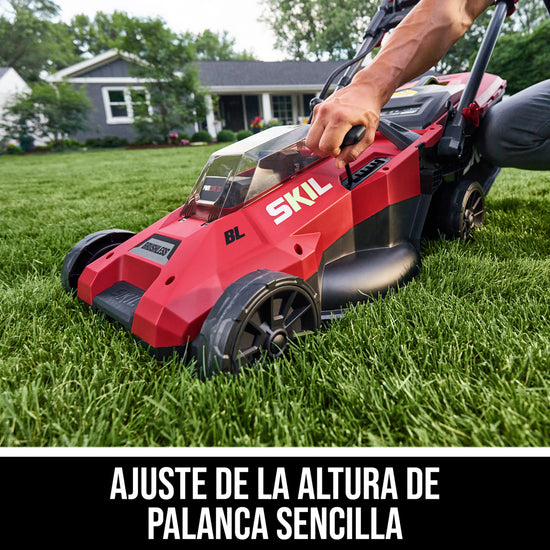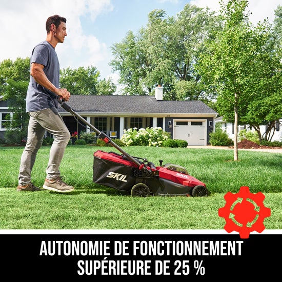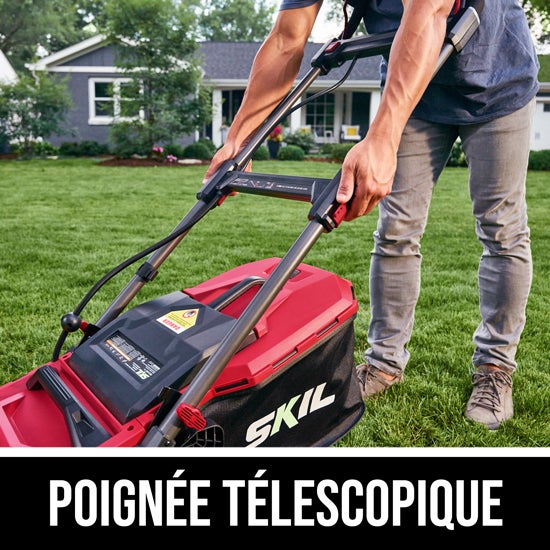 Get reliable performance and power in a cordless mower powered by PWRCORE 20™ lithium technology. The digital brushless motor combined with two PWRCORE 20™ 4.0Ah lithium batteries provides unbelievable power and cutting performance. You’ll have control from start to finish with a push-button start, while the single-lever height adjustment delivers 6 different cutting heights for your desired grass length. The two 4.0Ah PWRCORE 20™ Lithium-Ion batteries deliver 40V performance and can be used across all your SKIL PWRCORE 20™ devices. When the task is complete, the telescoping handle folds down completely allowing for vertical storage. This 18-inch cordless lawn mower kit includes two 4.0Ah PWRCORE 20™ lithium batteries for longer run time and a dual port charger.