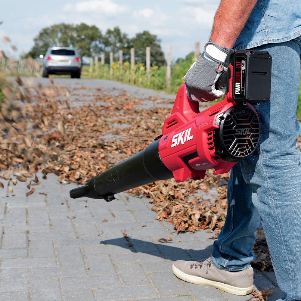 Get performance and efficiency in a cordless blower powered by PWRCORE 20™ lithium technology. The digital brushless motor and PWRCORE 20™ lithium battery technology keep this cordless blower running longer, while its turbine fan design maximizes performance for up to 400 CFM of clearing power. This cordless blower kit includes a nozzle attachment, 4.0Ah PWRCORE 20™ lithium-ion battery with charger, plus an Easy Storage Bracket that allows you to conveniently store all your SKIL PWRCORE 20™ outdoor equipment with ease. The included battery and charger are compatible with all SKIL tools in the PWRCORE20™ family.