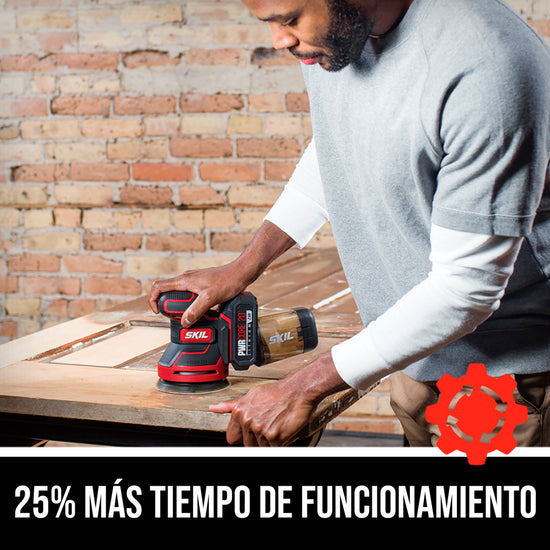 From refinishing wood furniture to cabinetry rehab projects, the high performance SKIL PWRCORE 20™ Random Orbital Sander can tackle any project requiring ultra-smooth sanding and everything in between. This versatile cordless electric sander vibrates and spins simultaneously, eliminating noticeable swirls and scratches other power sanders may leave behind. The hook-and-loop pad makes it fast and easy to change out sand paper, wasting no time on the job. This orbit sander kit comes with a PWRCORE 20™ 2.0Ah Lithium Battery and Automatic PWRJUMP™ Charger, providing longer run time and battery life.