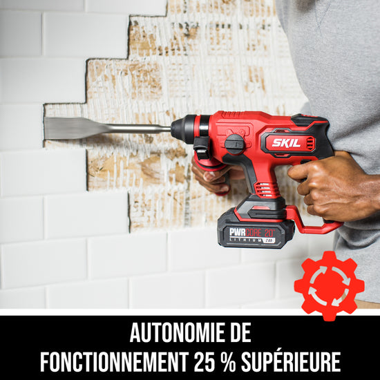 - 20V ROTARY HAMMER DRILL KIT—Includes a PWRCORE 20™ 5.0Ah Lithium Battery and Auto PWRJUMP™ Charger.