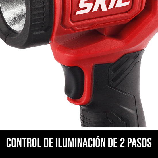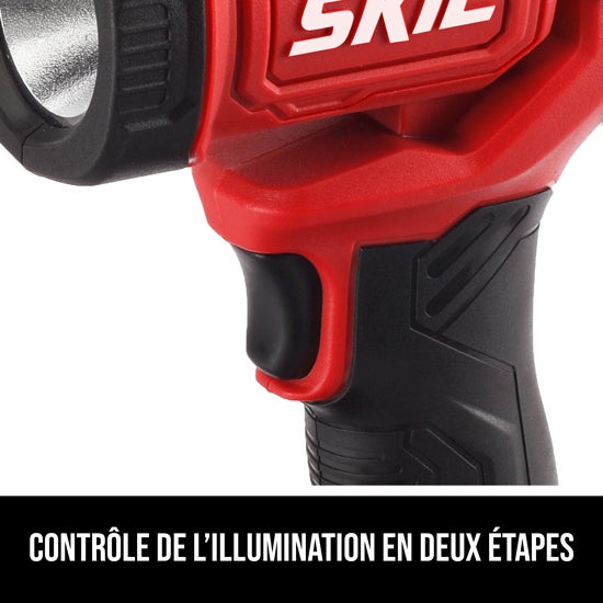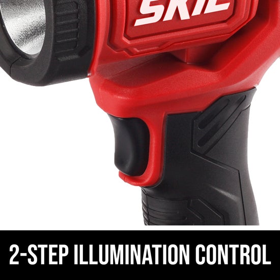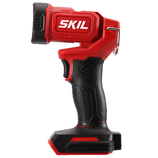 Shine some light on it. Whether you need to brighten a dark work area or just want some extra visibility for precision, the SKIL 20V LED Spotlight can help light the way to get the job done right. Experience high quality lighting for your work space with 2-step illumination control, with 150 and 300 lumens settings to fit different uses. The 104 degree pivoting head helps you shine light where you need it most, plus magnets and a hanging hook provide options for set up. Pair this spotlight with any SKIL 20V power tool!