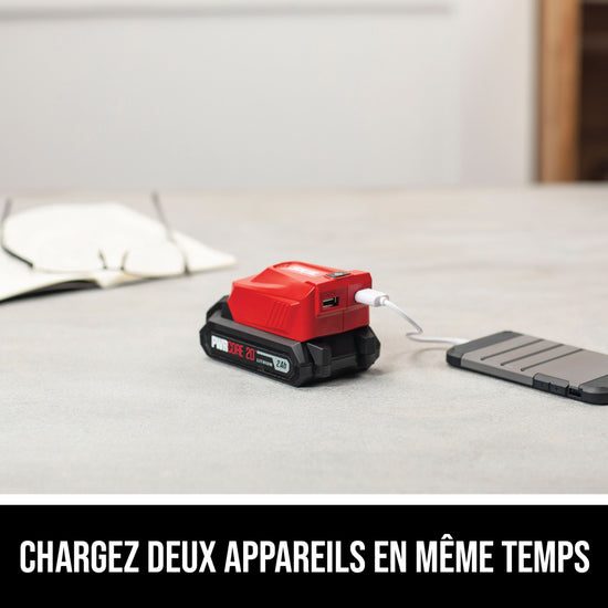 Your Go-To USB Adapter. The SKIL PWRASSIST™ 20 USB Adapter connects to any 20V battery. Just attach and power up your electronic devices on the go!
