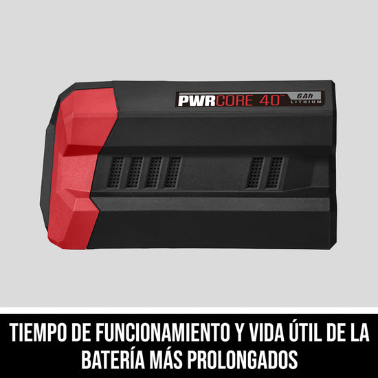 - PWRCORE 40™ LITHIUM BATTERY – This 40V 6.0Ah lithium battery fuels the power and performance of the PWRCORE 40™ system