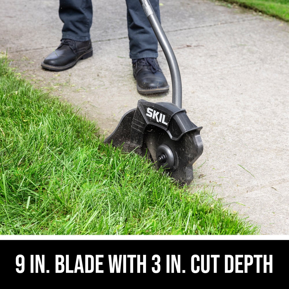 Enhance your lawn care game with crisp, clean edges using the SKIL PWRCORE 40™ 9 In. Edger Attachment. This universal attachment for the SKIL Multi-Head system includes a 9-inch blade with up to 3 inches of cutting depth for edge work along sidewalks and flower beds. An adjustable depth guide wheel delivers precision while a debris shield keeps you safe and reduces the mess from flying grass clippings, mulch, and dirt.