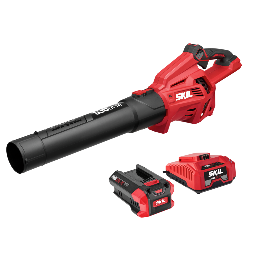 The SKIL PWRCORE 40™ 40V 530 CFM Leaf Blower features a digital brushless motor powered by PWRCORE 40™ lithium battery technology that keeps this cordless blower running longer while its turbine fan design maximizes performance for up to 530 CFM of clearing power. Stay powered on for extended periods with the cordless blower’s cruise lever, and blast through heavy leaves and debris with the power boost feature. IPX4-rated water resistance provides added durability for use in tough weather conditions, and a quick-release tube ensures compact storage between uses. This electric leaf blower kit includes a 2.5Ah PWRCORE 40™ battery and Auto PWRJUMP charger.