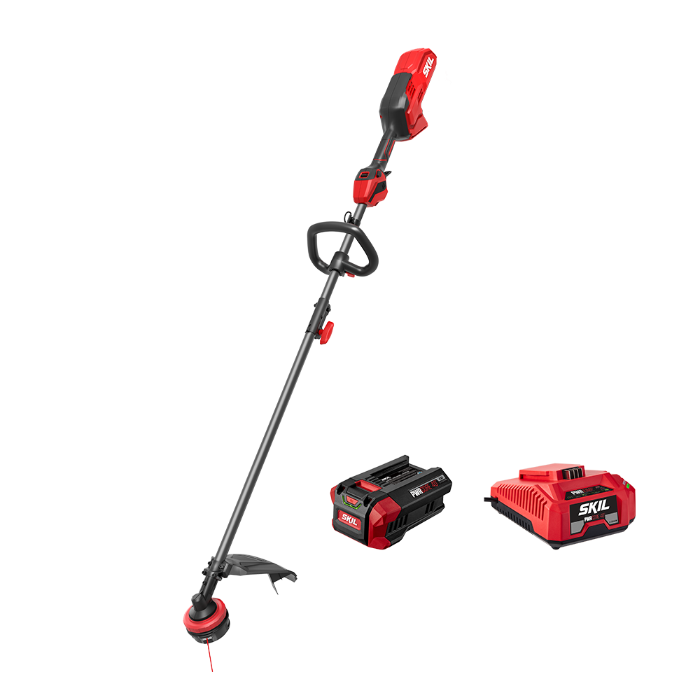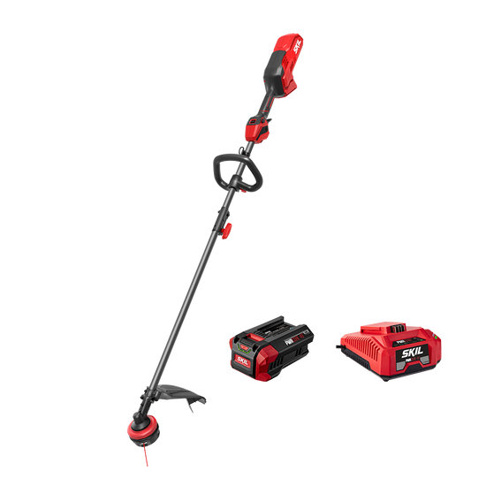 Take lawn care to the next level with a cordless string trimmer built for performance, efficiency, ease of use—and much more. The SKIL PWRCORE 40™ Brushless 40V 16 In. Power Head String Trimmer Kit combines a digital brushless motor and PWRCORE 40™ lithium battery technology to deliver the power to cut through thick grasses and weeds with ease. The up to 16-inch cutting swath on this electric string trimmer ensures you can trim quickly and efficiently, and its two-speed selector allows you to choose between maximizing power or runtime. Simply tap the dual-line bump feed head on the ground to release more line and continue working. Reloading line is easy with its Twist Load™ head—just insert the line and twist to load. This cordless trimmer is powered by a 40V power head that is attachment-ready and designed for use with a variety of SKIL attachments within the SKIL Multi-Head System, allowing you to level up your lawn care game. This string trimmer kit includes the PWRCORE 40™ Power Head, string trimmer attachment, PWRCORE 40™ 4.0Ah battery, and Auto PWRJUMP™ charger.