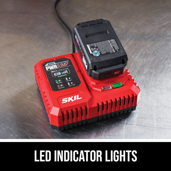 Charge any SKIL 20V PWRCORE™ Lithium battery in a flash with the SKIL PWRCORE 20™ Auto PWRJUMP™ Charger. Less charging time for batteries means less downtime, getting you back to the job faster. When you power up your tools with the SKIL 20V Charger, nothing can stand between you and getting the job done.