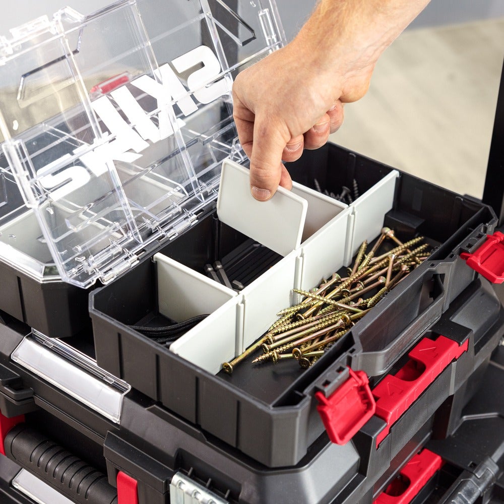 - COMPACT ORGANIZER WITH REMOVABLE DIVIDERS INCLUDED - For custom organization of parts and accessories with the included long divider and (6) short dividers
