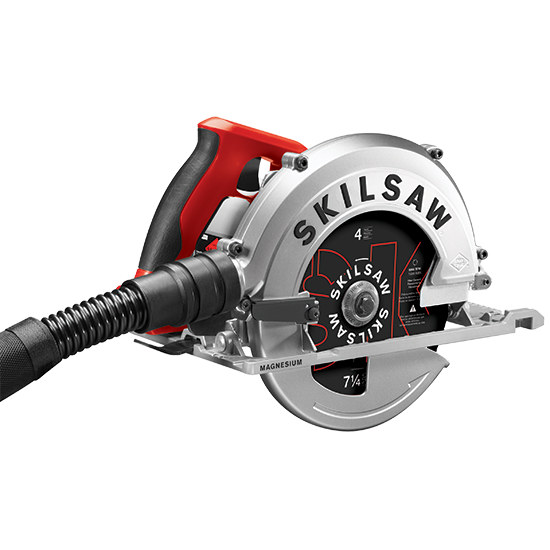 If you’ve ever worked with fiber cement, you know cutting it can be tough on both you and your saw. Now you can power through stacks of fiber cement while the silica dust is funneled away from the tool motor for longer life. This SIDEWINDER™ Skilsaw has a blade guard extension and dust channel to funnel dust into the included vacuum hose to be collected by your jobsite vacuum. We’ve even added sealed motor bearings and a dust resistant switch to help keep this saw running job after job. The unique included no-mar cord sleeve keeps the vacuum hose and power cord from getting in your way. Cut siding and trim straight and clean all day with less fatigue, thanks to the lightweight yet rugged magnesium components. And nothing tops SKIL’s Dual-Field™ Motor and SKIL blade for durability. Big job or small—this SIDEWINDER™ will leave all other circular saws in the dust.