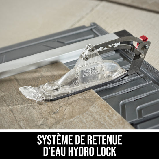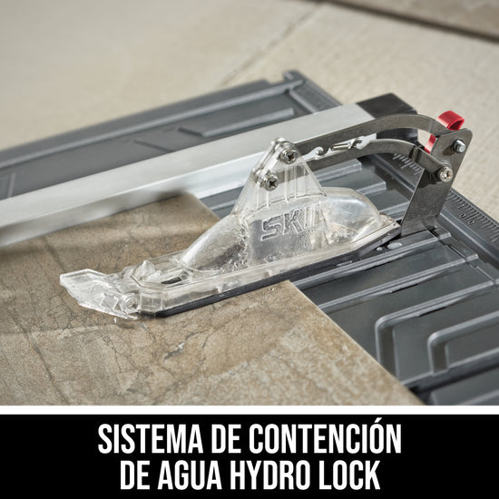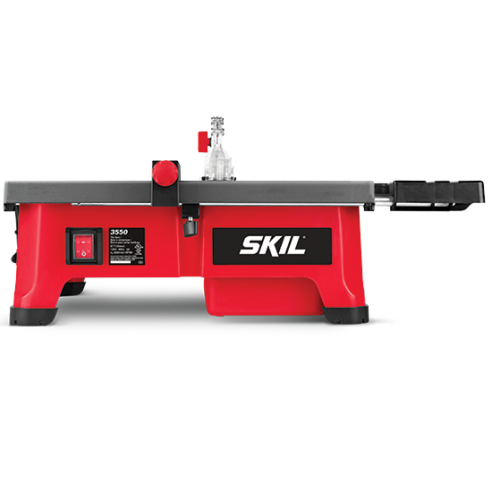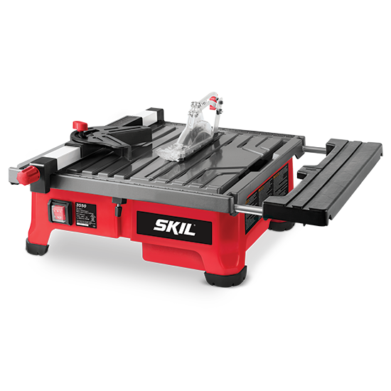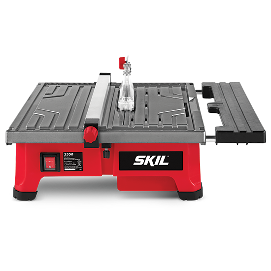 Whether you're updating or renovating, adding tile to your kitchen or bathroom is now easier than ever with the SKIL 7-inch Wet Tile Saw (3550). The saw's innovative HydroLock System keeps water splash to a minimum so tiles can be cut in the room where they're being installed. You no longer need to go back and forth to a saw set up in the garage or outside to cut the tiles, so the SKIL tile saw with HydroLock System helps you finish the project faster too! The 3550 works with a 7-inch continuous rim diamond blade, which provides efficient and even cutting. It also comes equipped with a durable rust-resistant aluminum table top and a sliding side extension that can be used to support tiles up to 18 x 18-inch.
