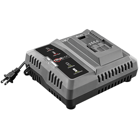 - TRUEHVL™ Quick Charger goes from zero to full charge in only 1 hour to power a full day of cuts