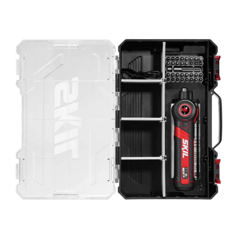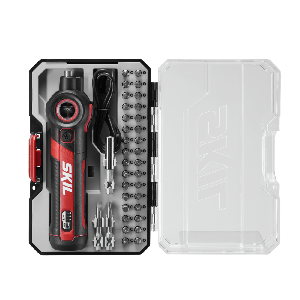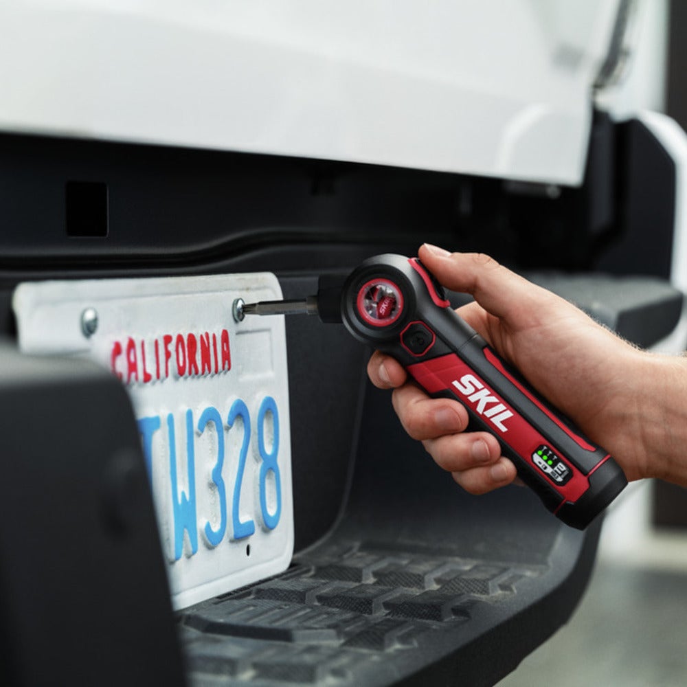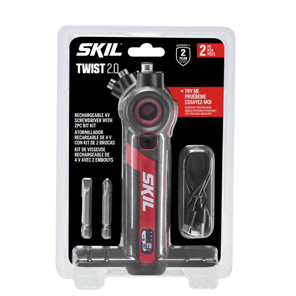 From assembling furniture and toys to tightening screws in hard-to-reach cabinets, get small jobs and repairs done quickly and comfortably with the SKIL Twist 2.0 Rechargeable 4V Screwdriver. This ergonomic electric screwdriver features a patent-pending pivoting head that locks between three positions — 0, 22.5, and 45 degrees — for improved comfort in tight spaces. It features three torque settings that allow you to adapt to the application at hand. Its trigger button is conveniently located for easy one-finger use, and its bright LED lights up dark spaces. The cordless screwdriver’s integrated battery features a USB-C charging port with included cable for convenient recharging.