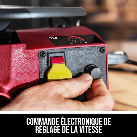 - ELECTRONIC VARIABLE SPEED CONTROL—Provides greater cutting control with a variety of materials